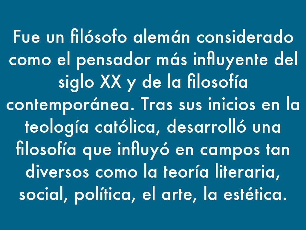 Fue un filósofo alemán considerado como el pensador más influyente del siglo XX y de la filosofía contemporánea. Tras sus inicios en la teología católica, desarrolló una filosofía que influyó en campos tan diversos como la teoría literaria, social, política, el arte, la estética.