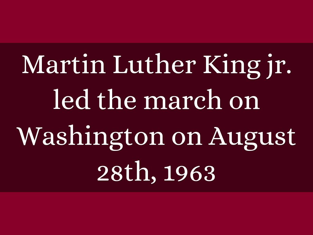 Martin Luther King jr. led the march on Washington on August 28th, 1963
