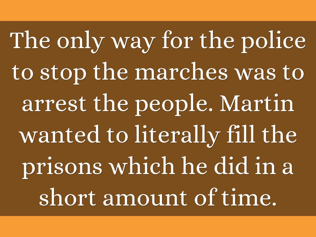 The only way for the police to stop the marches was to arrest the people. Martin wanted to literally fill the prisons which he did in a short amount of time.