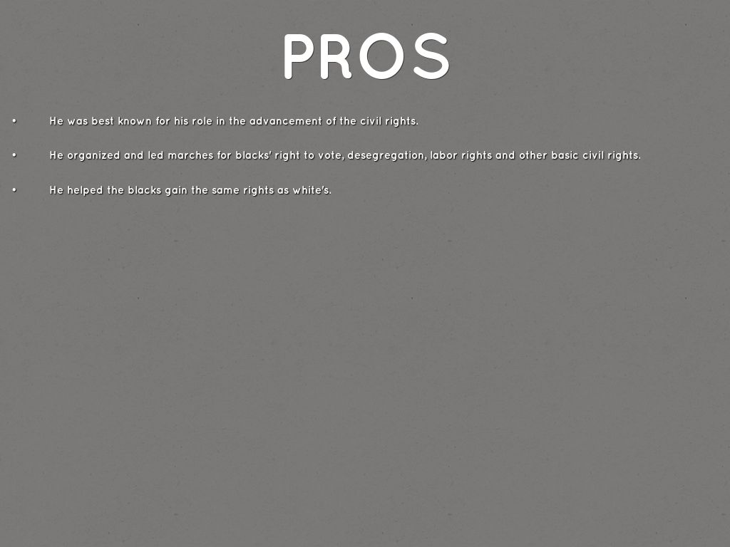 • He organized and led marches for blacks' right to vote, desegregation, labor rights and other basic civil rights.