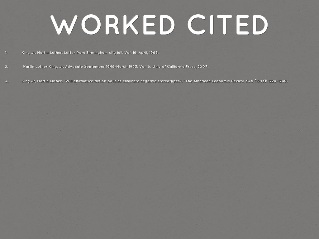 • King Jr, Martin Luther. "Will affirmative-action policies eliminate negative stereotypes?." The American Economic Review 83.5 (1993): 1220-1240.