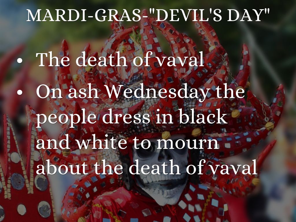 On ash Wednesday the people dress in black and white to mourn about the death of vaval