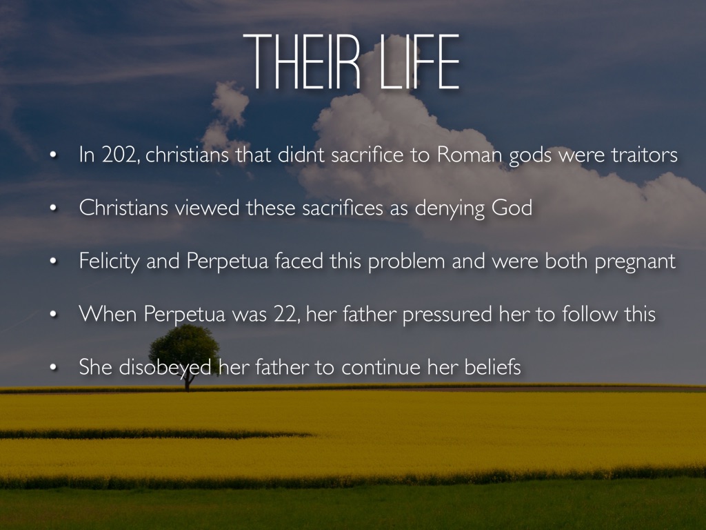 "Nor can I call myself any other than I am, that is to say, a Christian." -Perpetua