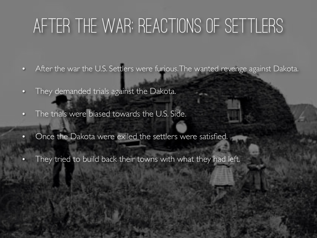 After the war the U.S. Settlers were furious. The wanted revenge against Dakota.