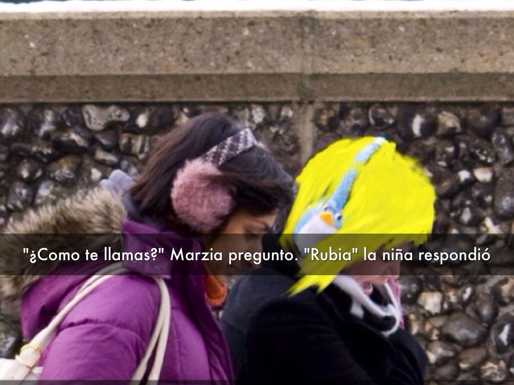 "¿Como te llamas?" Marzia pregunto. "Rubia" la niña respondió