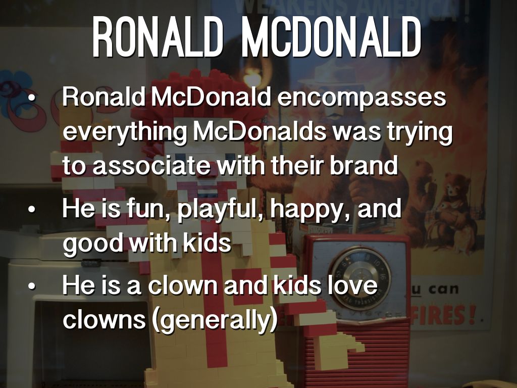 Ronald McDonald encompasses everything McDonalds was trying to associate with their brand