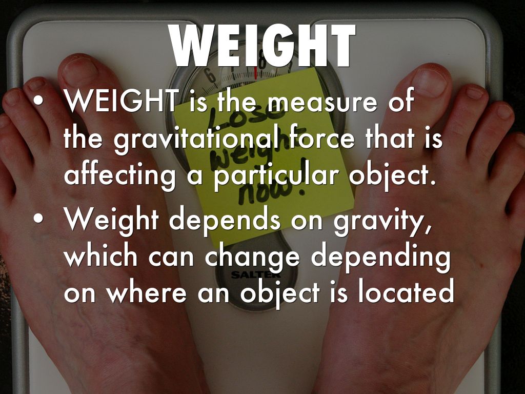 WEIGHT is the measure of the gravitational force that is affecting a particular object.