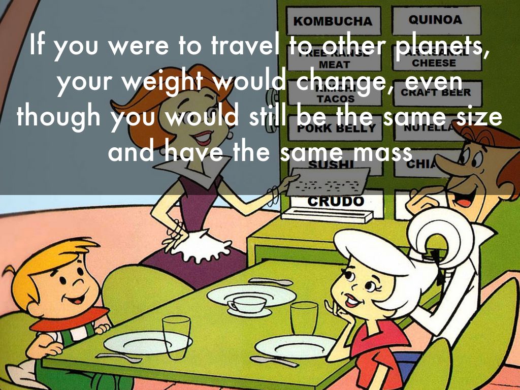 If you were to travel to other planets, your weight would change, even though you would still be the same size and have the same mass