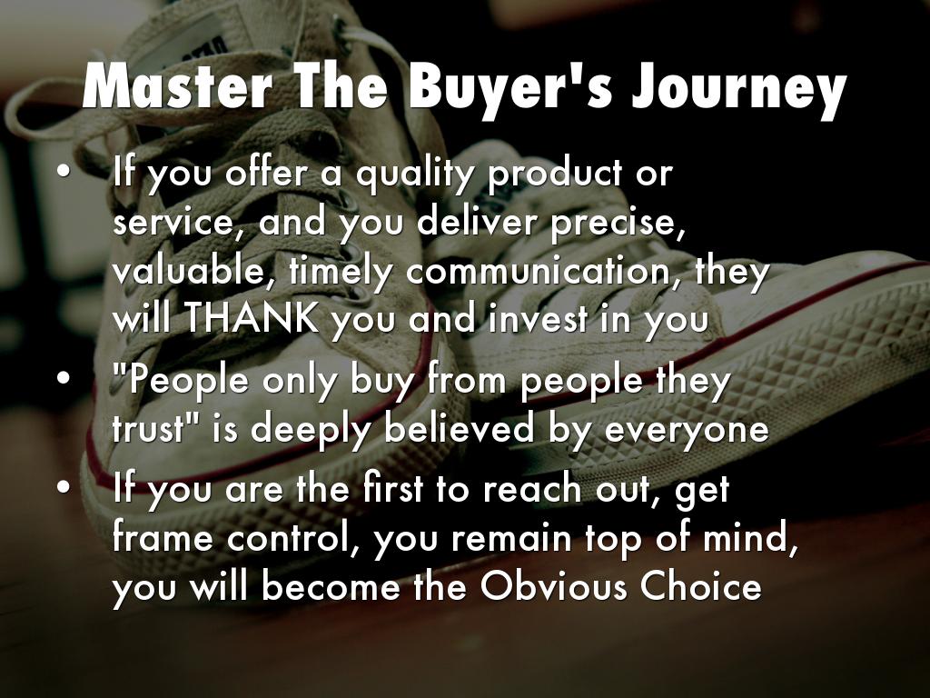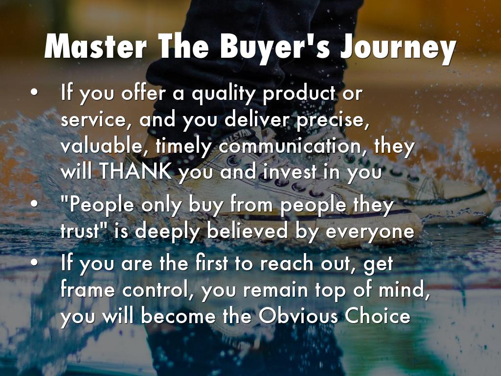 If you are the first to reach out, get frame control, you remain top of mind, you will become the Obvious Choice