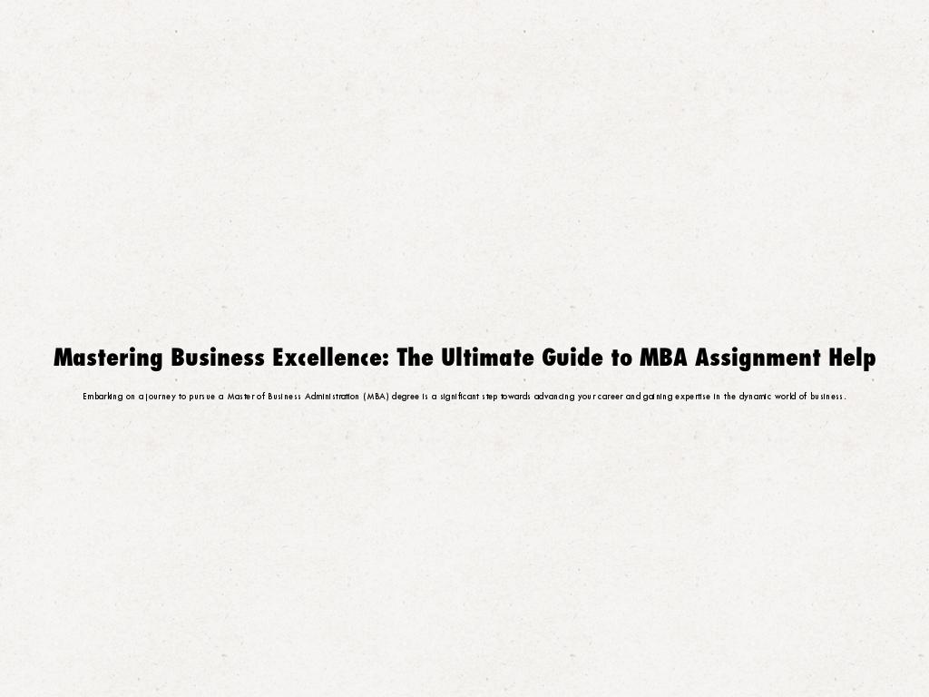 Mastering Business Excellence: The Ultimate Guide to MBA Assignment Help