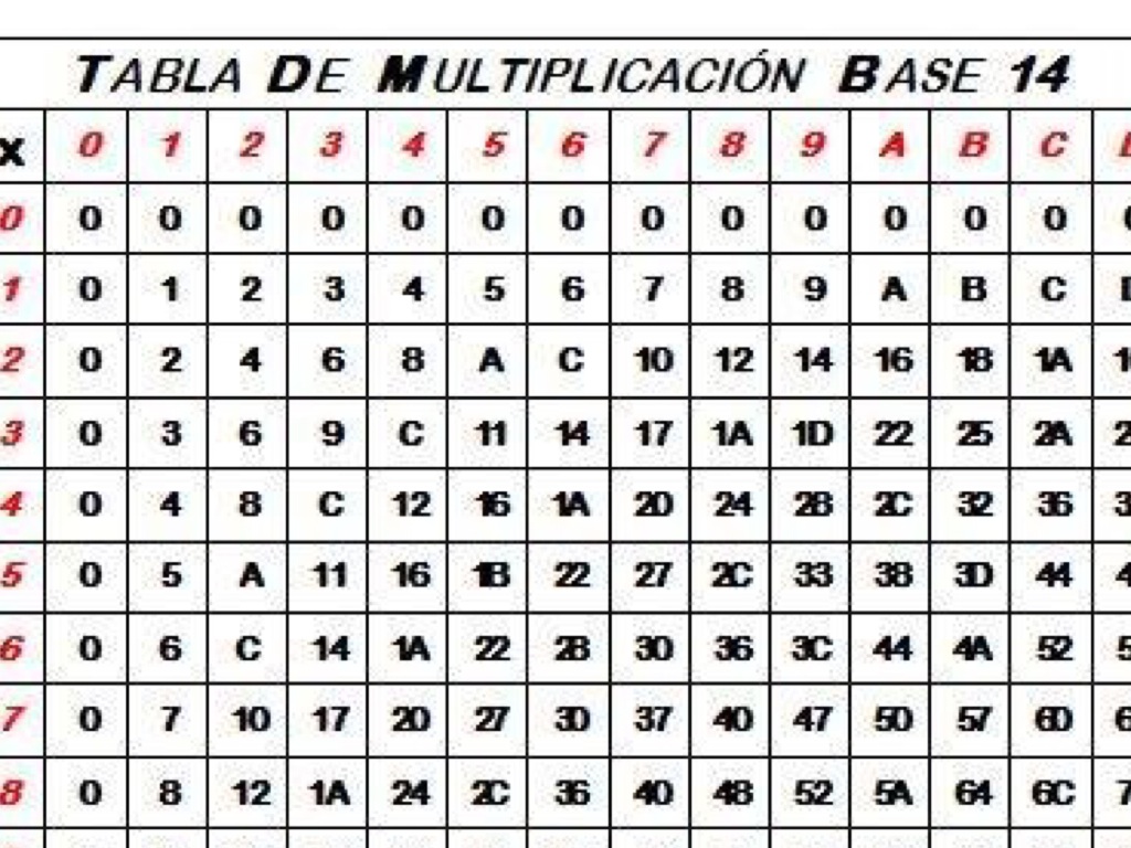 SUMA, RESTA, MULTIPLICACION Y DIVISION EN BASE 14(EQUIPO 6).