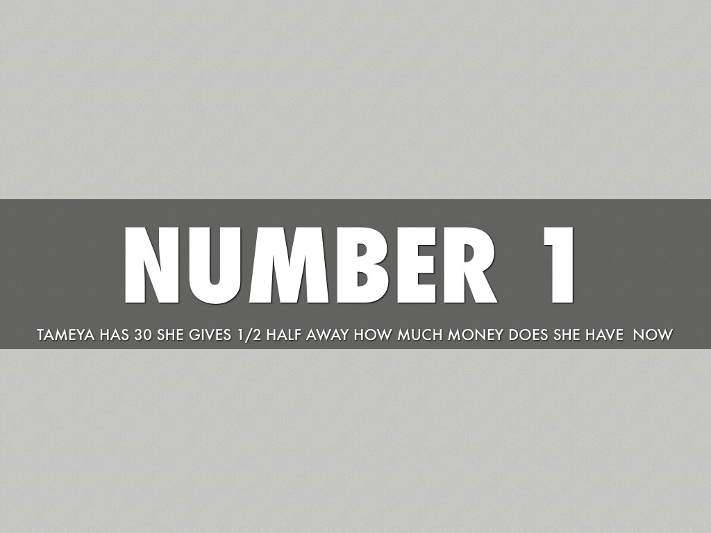 TAMEYA HAS 30 SHE GIVES 1/2 HALF AWAY HOW MUCH MONEY DOES SHE HAVE NOW