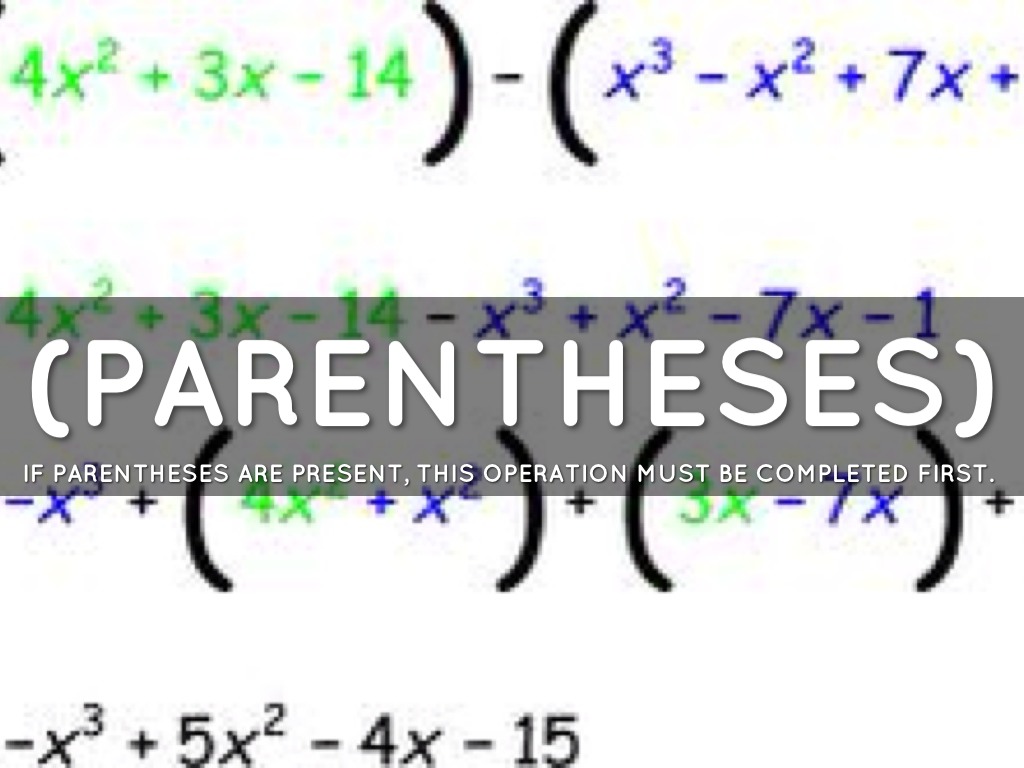 LOOK FOR EXPONENTS AFTER PARENTHESES ARE CLEARED.