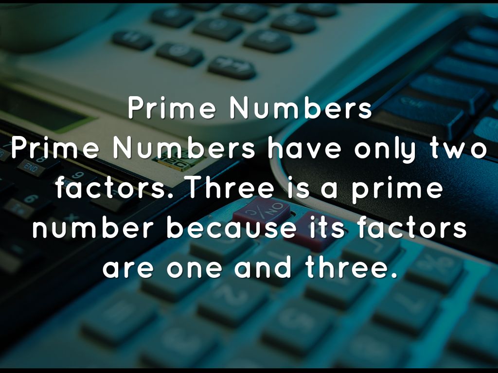 Prime Numbers have only two factors. Three is a prime number because its factors are one and three.