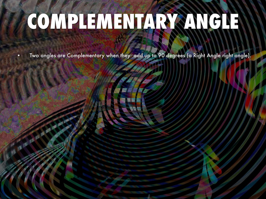 Two angles are Complementary when they add up to 90 degrees (a Right Angle right angle).