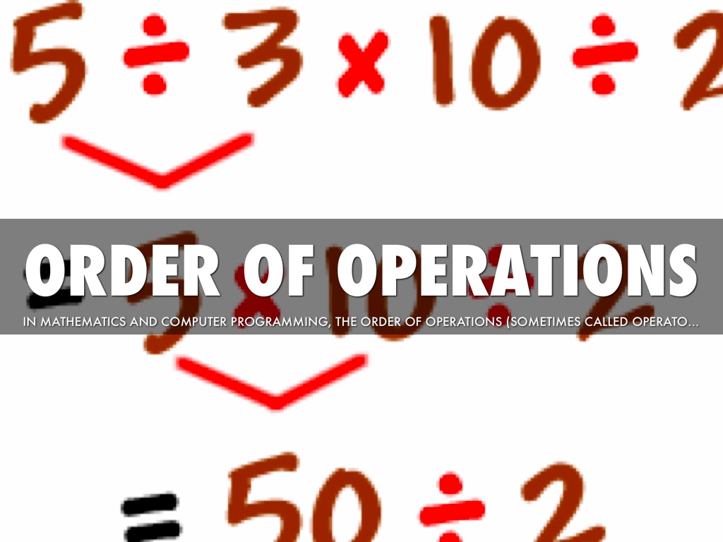 IN MATHEMATICS AND COMPUTER PROGRAMMING, THE ORDER OF OPERATIONS (SOMETIMES CALLED OPERATOR PRECEDENCE) IS A RULE USED TO CLARIFY WHICH PROCEDURES SHOULD BE PERFORMED FIRST IN A GIVEN MATHEMATICAL EXPRESSION.