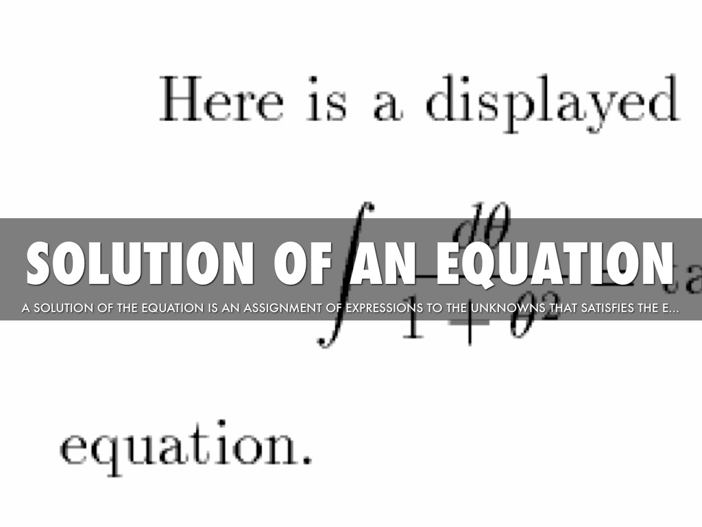 A SOLUTION OF THE EQUATION IS AN ASSIGNMENT OF EXPRESSIONS TO THE UNKNOWNS THAT SATISFIES THE EQUATION; IN OTHER WORDS, EXPRESSIONS SUCH THAT, WHEN THEY ARE SUBSTITUTED FOR THE UNKNOWNS, THE EQUATION BECOMES AN IDENTITY.