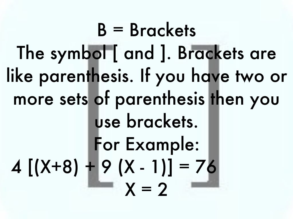 The symbol [ and ]. Brackets are like parenthesis. If you have two or more sets of parenthesis then you use brackets.