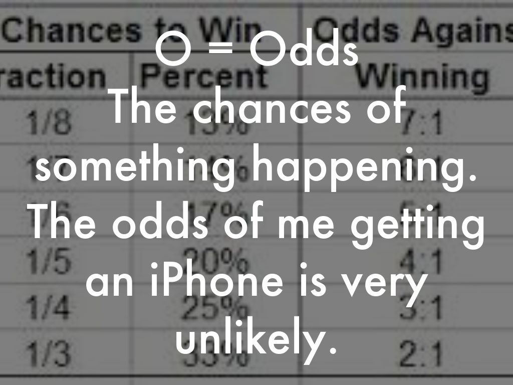 The chances of something happening. The odds of me getting an iPhone is very unlikely.