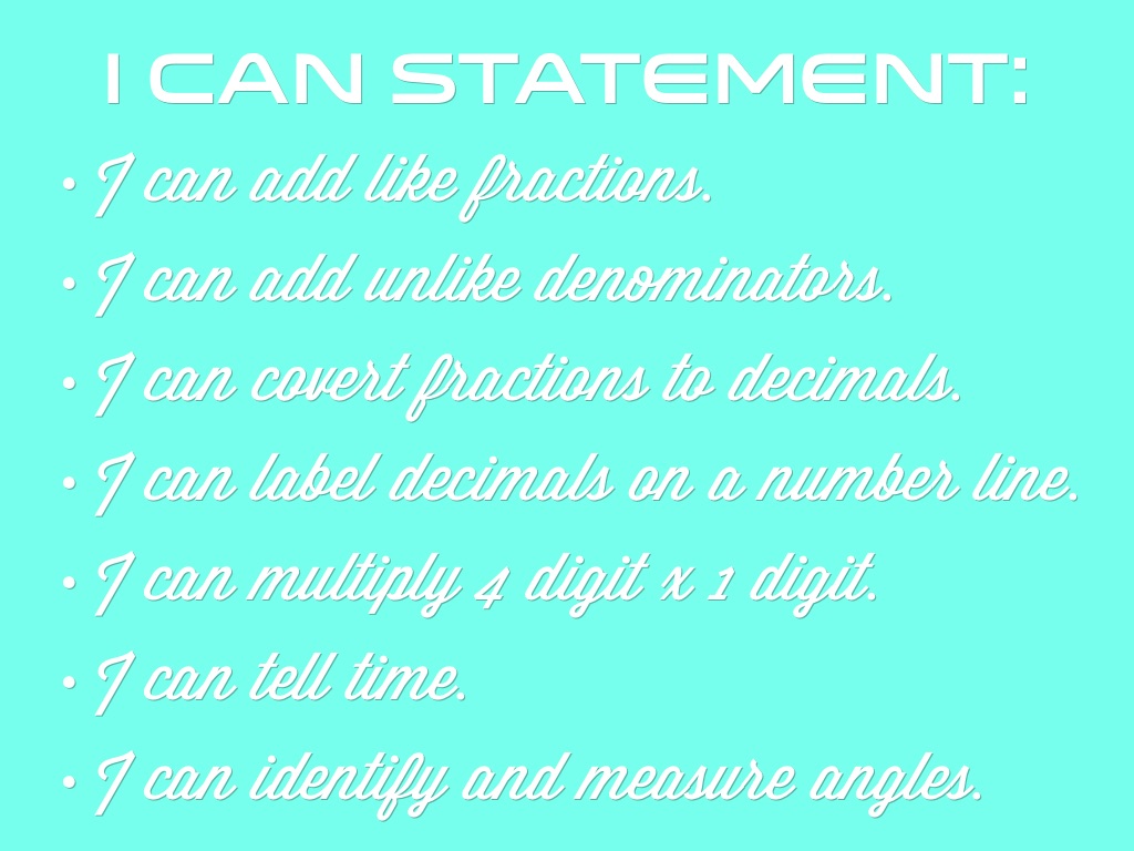 I CAN CONVERT A MIXED NUMBER INTO AN IMPROPER FRACTION.