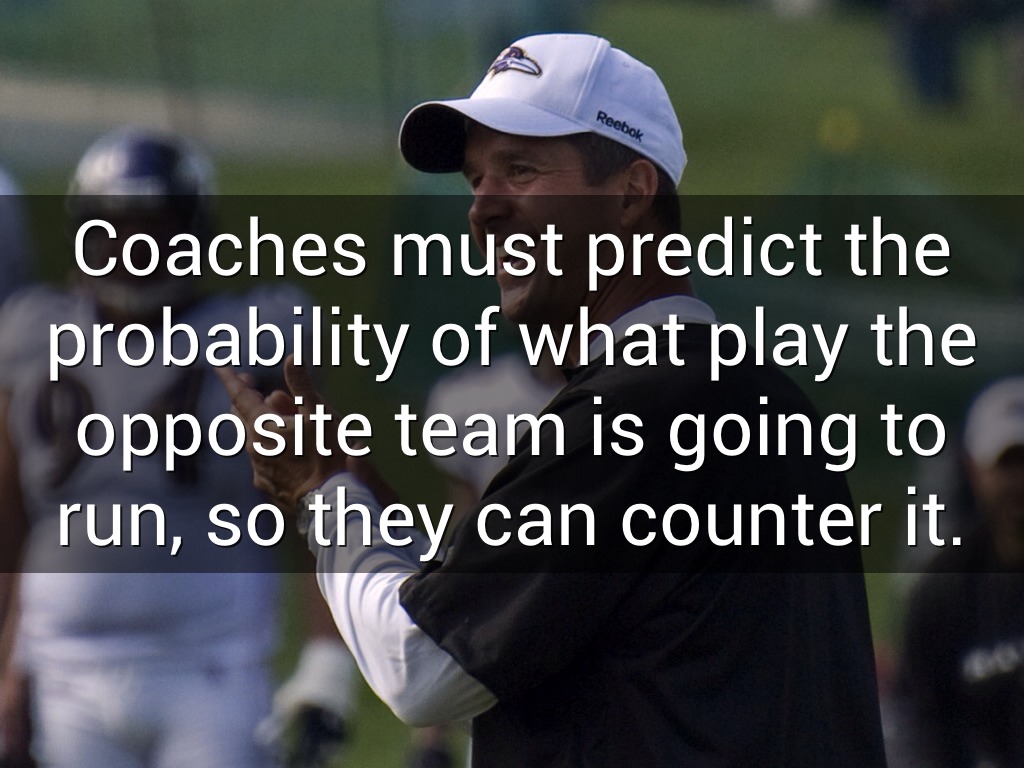 Coaches must predict the probability of what play the opposite team is going to run, so they can counter it.