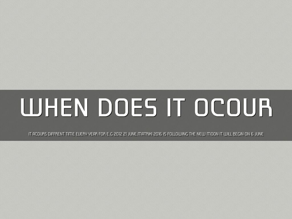 IT ACOURS DIFFRENT TIME EVERY YEAR FOR E.G 2012 21 JUNE.MATRIKI 2016 IS FOLLOWING THE NEW MOON IT WILL BEGIN ON 6 JUNE
