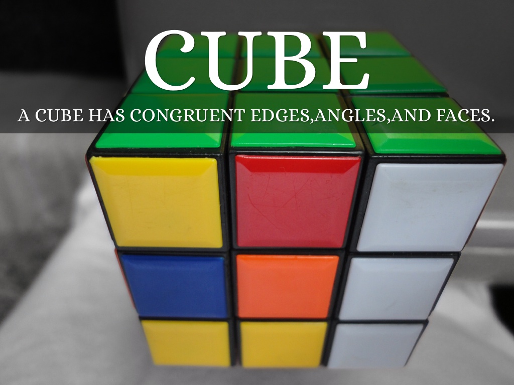 A CUBE HAS CONGRUENT EDGES,ANGLES,AND FACES.