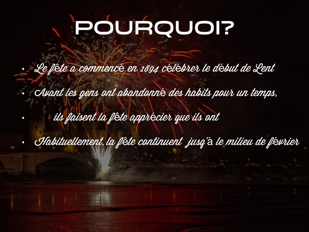 • Le fête a commencé en 1894 célébrer le début de Lent