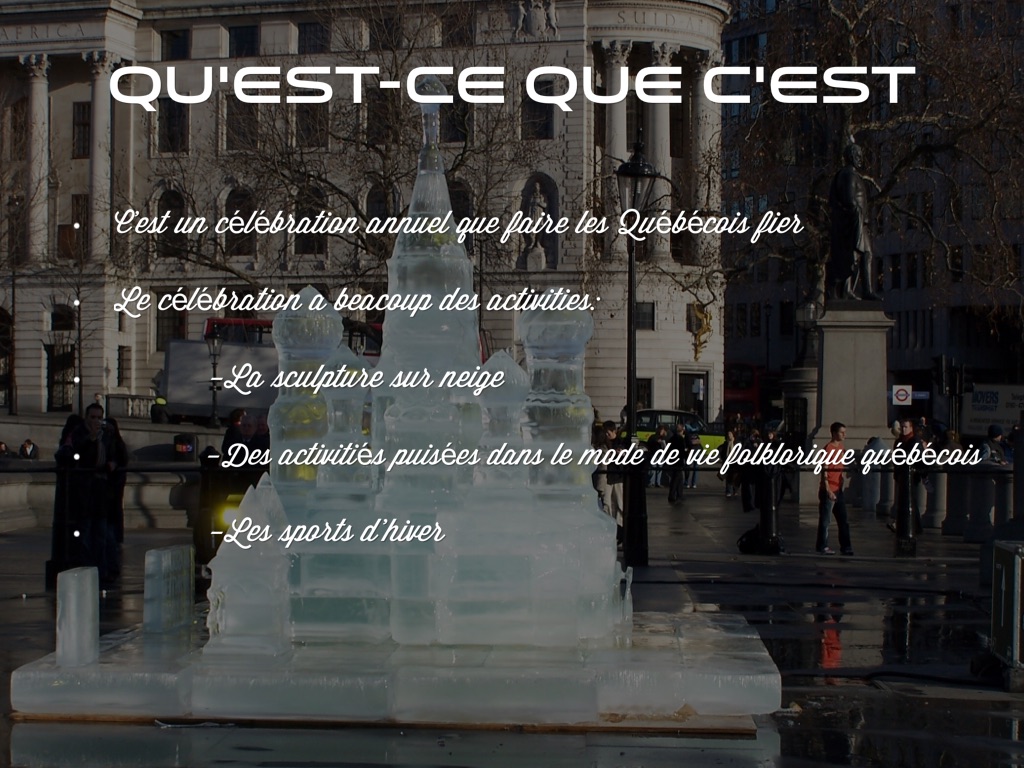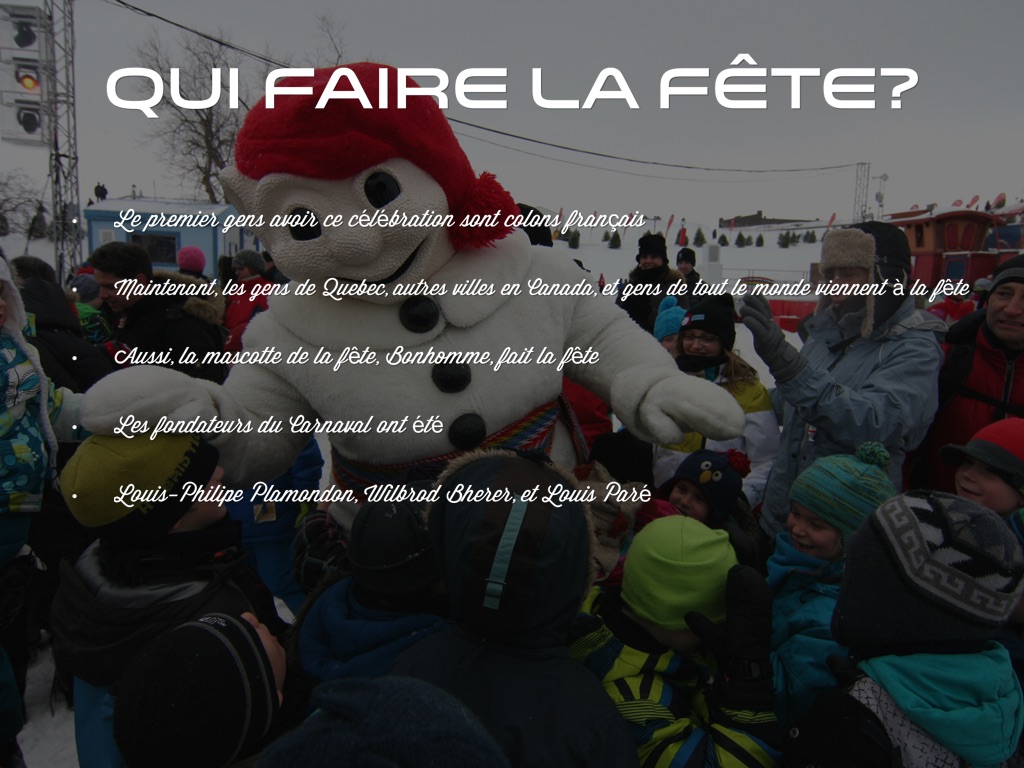 • Maintenant, les gens de Quebec, autres villes en Canada, et gens de tout le monde viennent à la fête