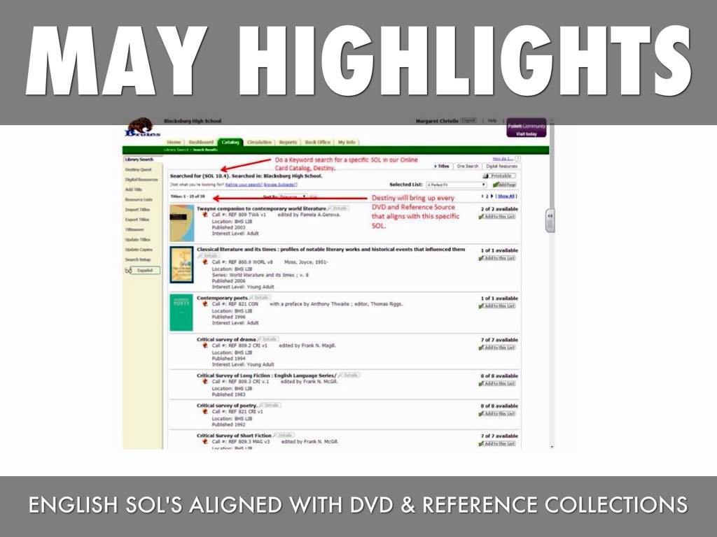 LIBRARY SERVICES DURING SOL TESTING