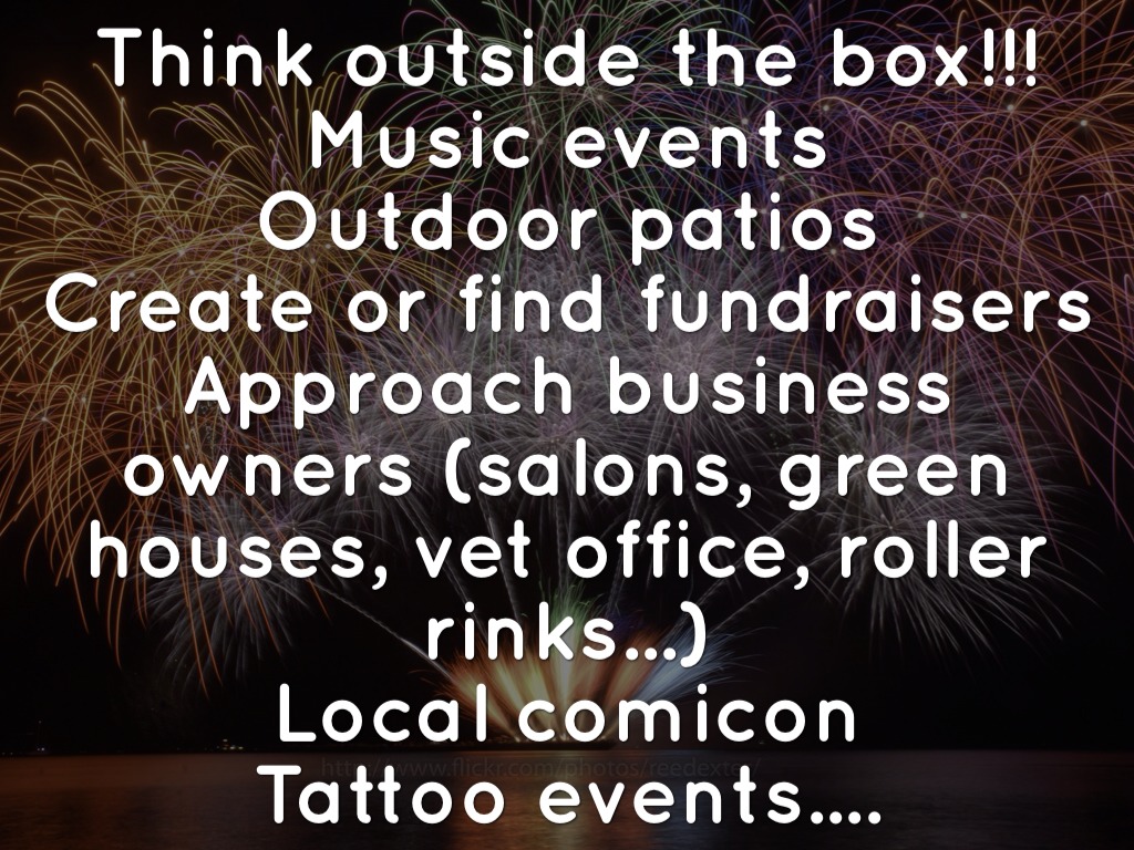Approach business owners (salons, green houses, vet office, roller rinks...)