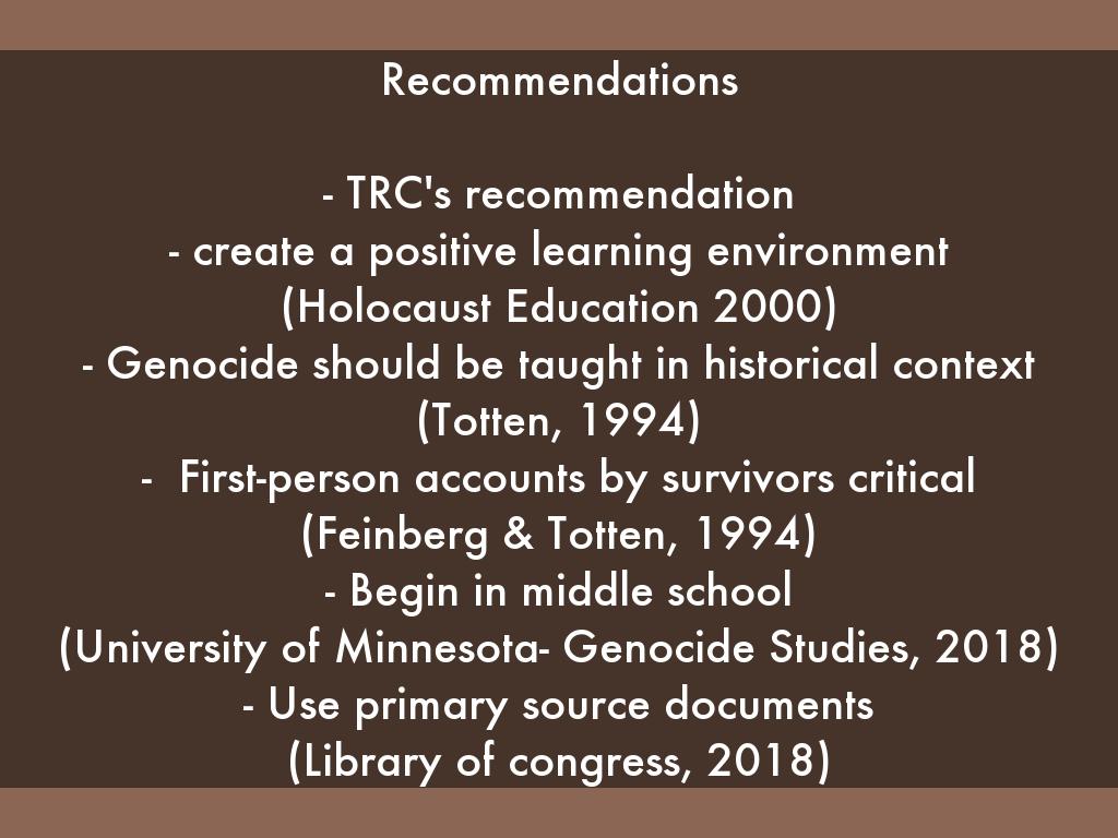 - Genocide should be taught in historical context