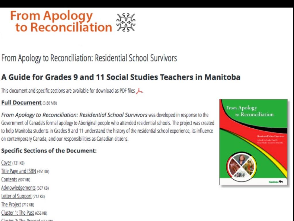 - MB Education created teacher guides (From Apology to Reconciliation)