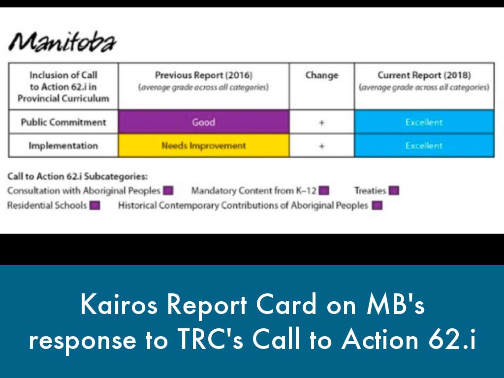 Kairos Report Card on MB's response to TRC's Call to Action 62.i