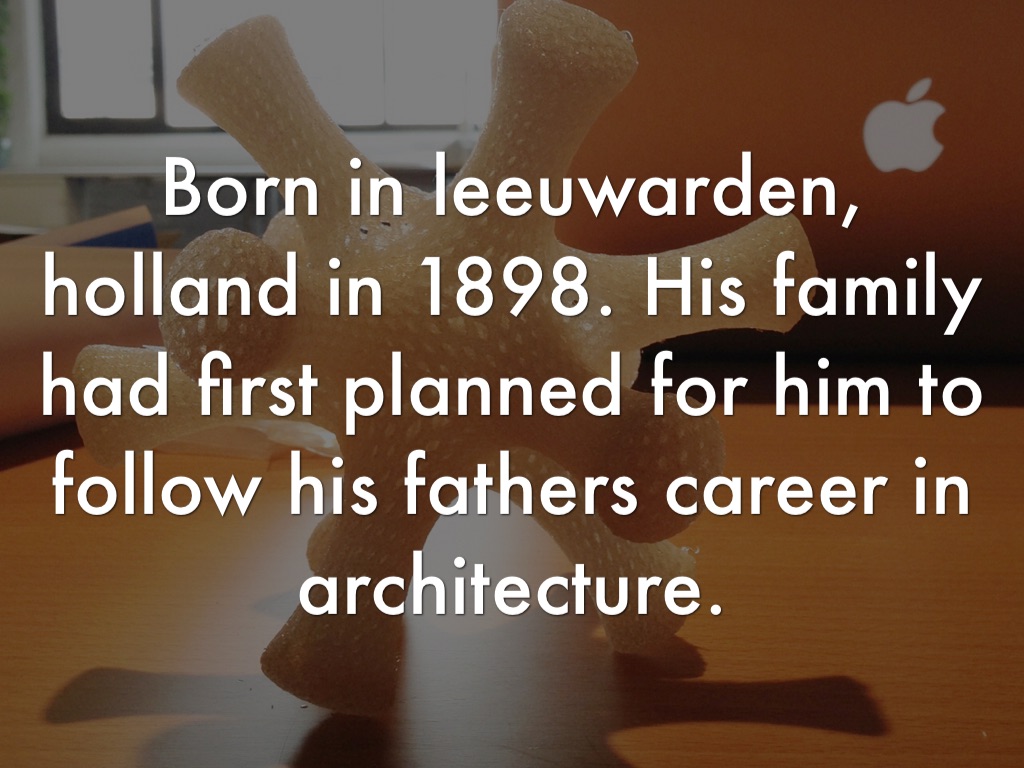 Born in leeuwarden, holland in 1898. His family had first planned for him to follow his fathers career in architecture.