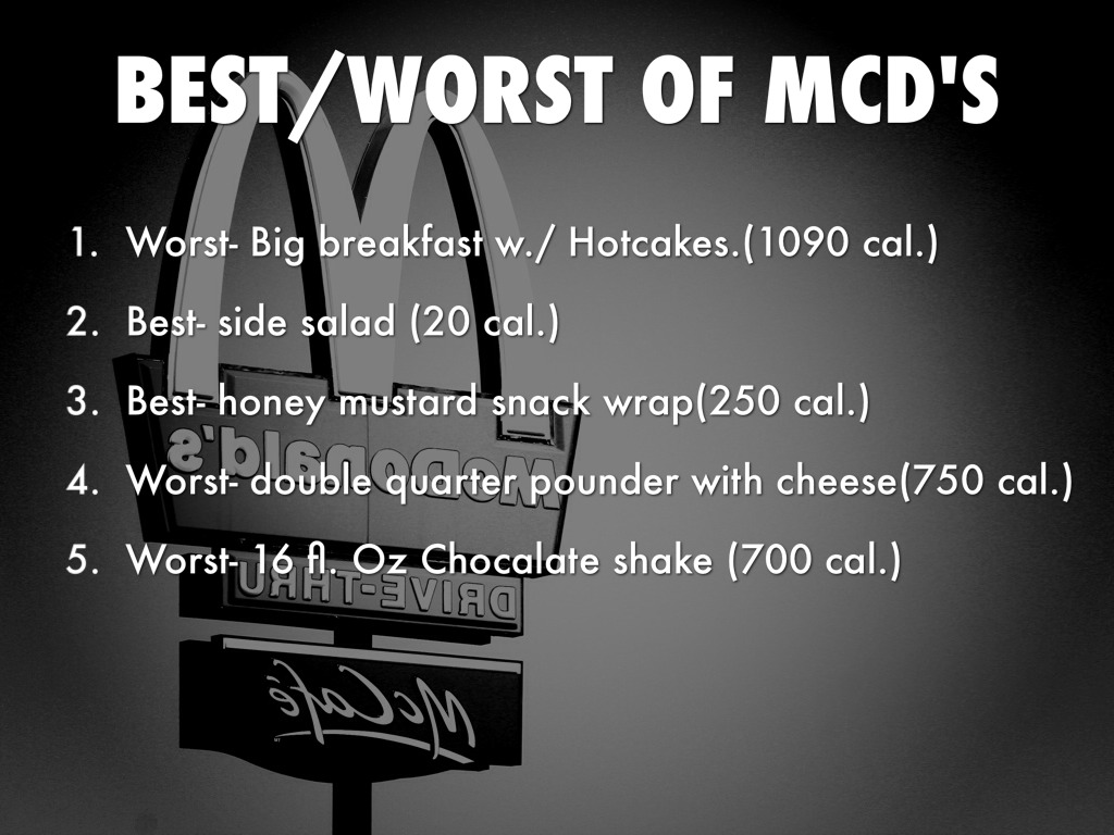Worst- Big breakfast w./ Hotcakes.(1090 cal.)