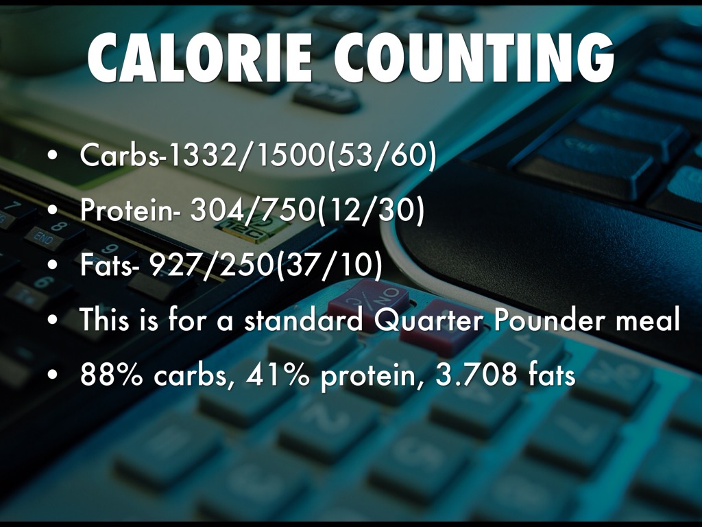 fats- 510/65(7.84) Saturated Fat- 19/20 (95%) Carbs- 111/300(37%) Cholesterol-575/300(1.91)