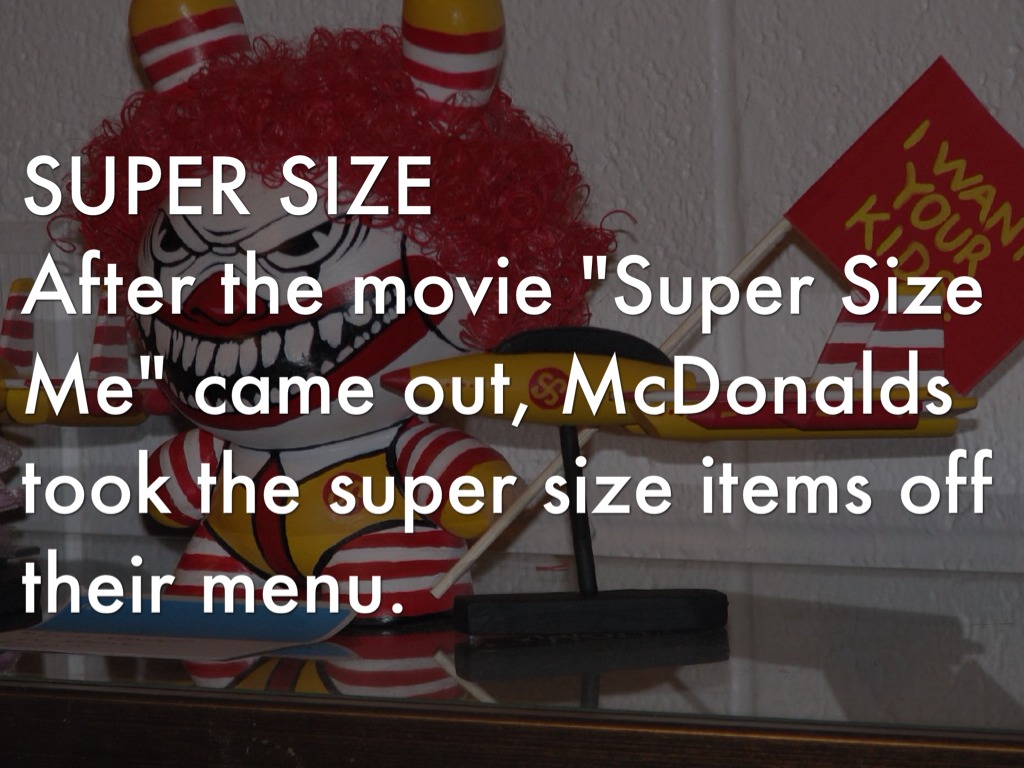After the movie "Super Size Me" came out, McDonalds took the super size items off their menu.