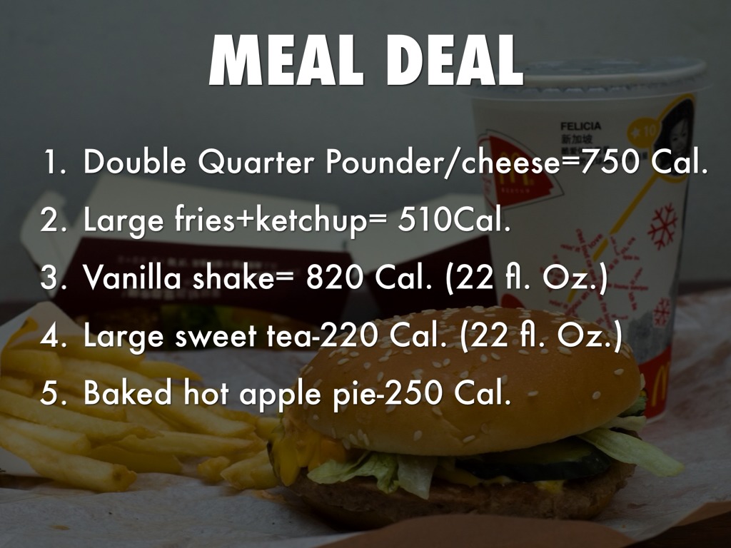 Vanilla shake= 820 Cal. (22 fl. Oz.)