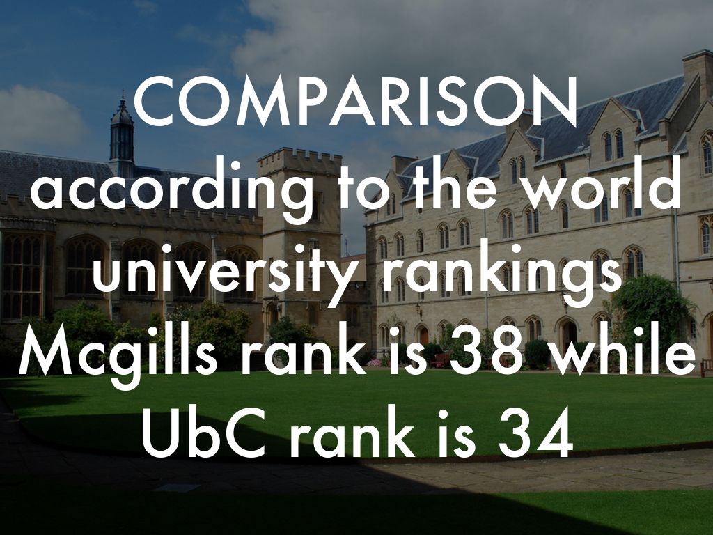 according to the world university rankings Mcgills rank is 38 while UbC rank is 34