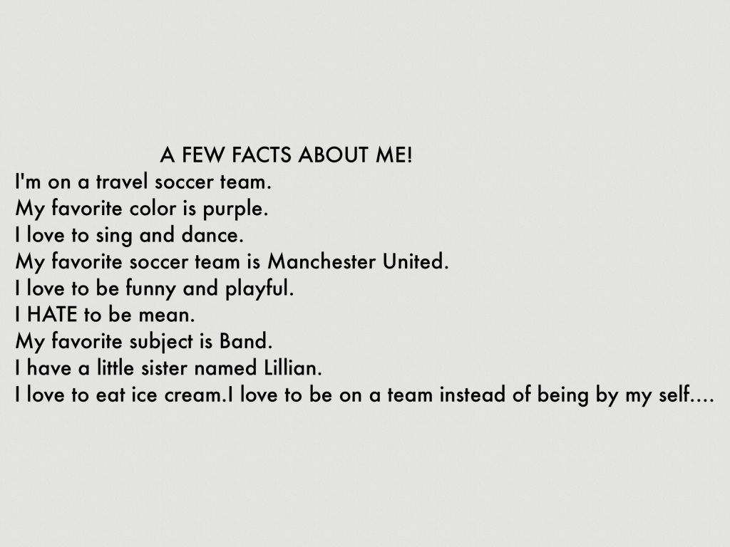 I love to eat ice cream.I love to be on a team instead of being by my self.