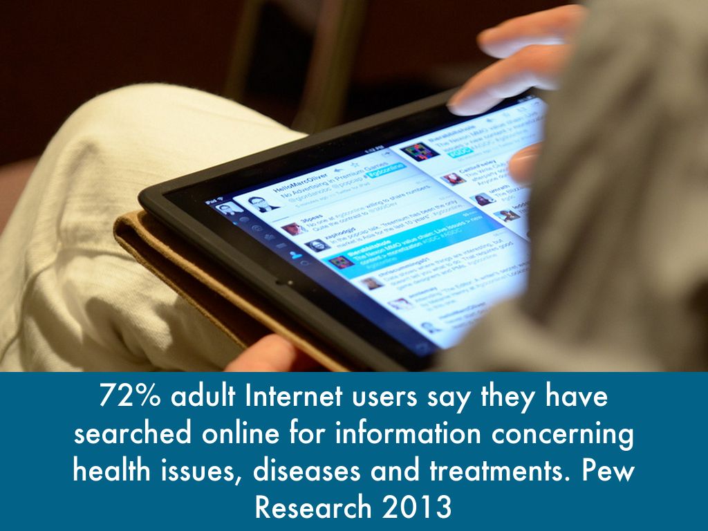 72% adult Internet users say they have searched online for information concerning health issues, diseases and treatments. Pew Research 2013