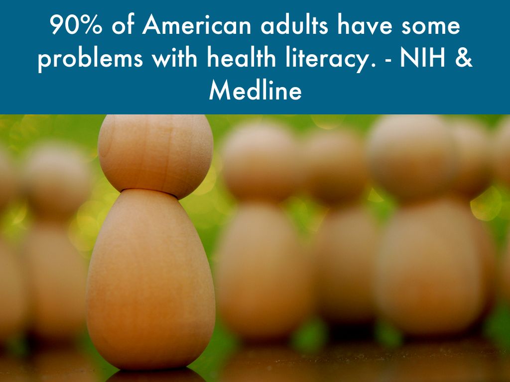90% of American adults have some problems with health literacy. - NIH & Medline