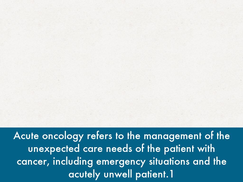 Acute oncology refers to the management of the unexpected care needs of the patient with cancer, including emergency situations and the acutely unwell patient.1