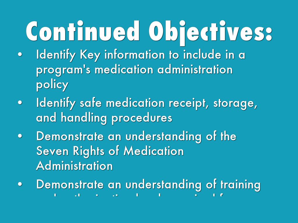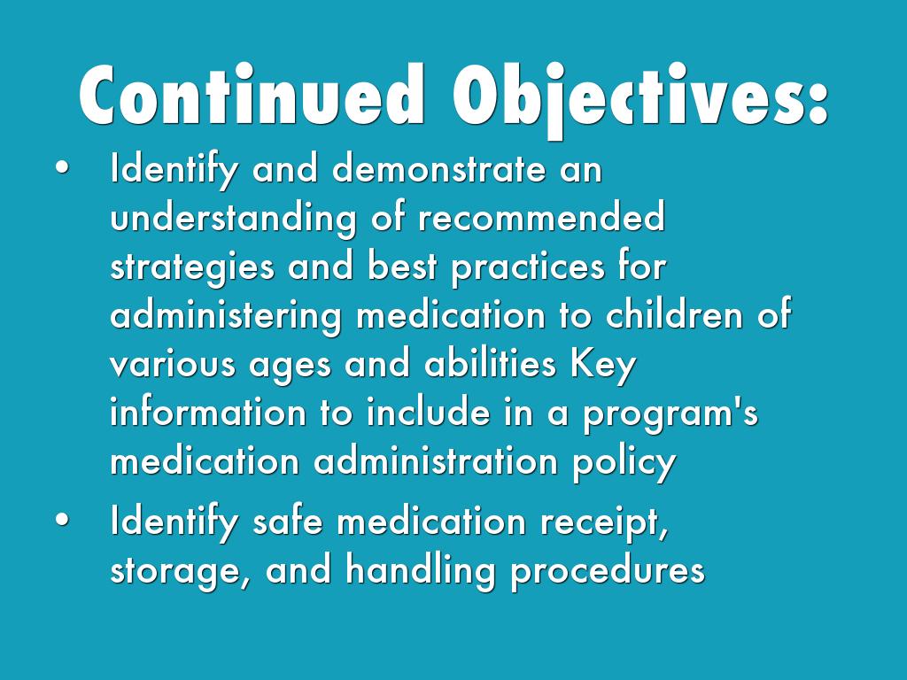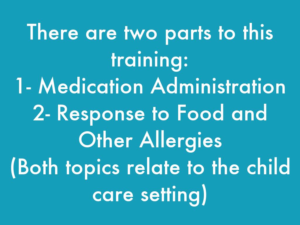 This resource covers the objectives for medication administration in the child care setting and we will walk through this resource step by step. It has some great forms and other resources that will allow you to see samples of this type of form. I will also relate the Nevada state regulations r/t Medication. I have attached these regulation on a handout at the back of the Participant's Manual. (Pass out manuals)