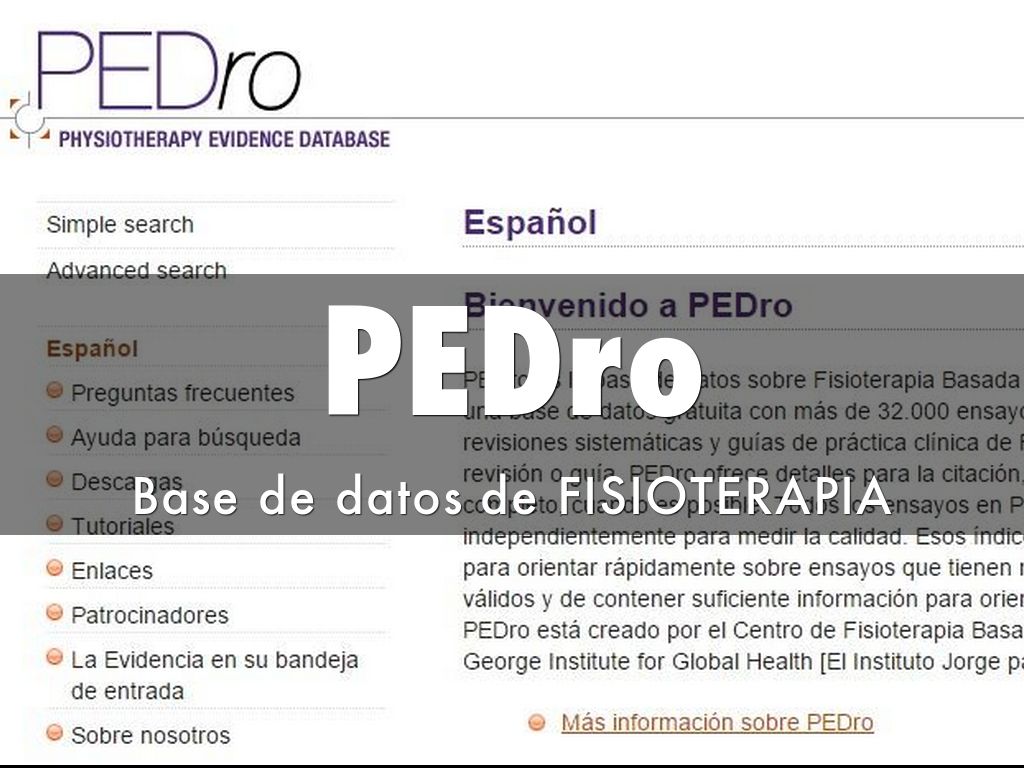 PEDro es una base de datos gratuita con más de 32.000 ensayos aleatorios controlados, revisiones sistemáticas y guías de práctica clínica de Fisioterapia.