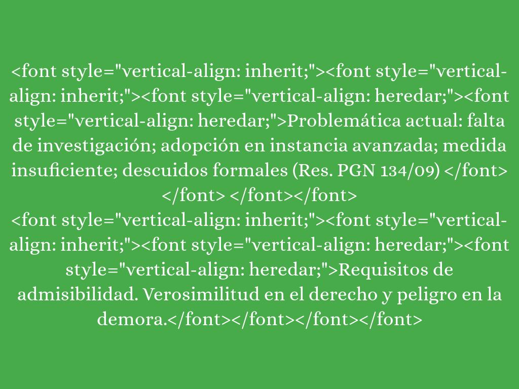 Problemática actual: falta de investigación; adopción en instancia avanzada; medida insuficiente; descuidos formales (Res. PGN 134/09)