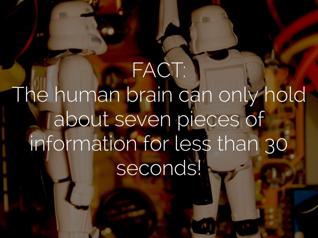 The human brain can only hold about seven pieces of information for less than 30 seconds!