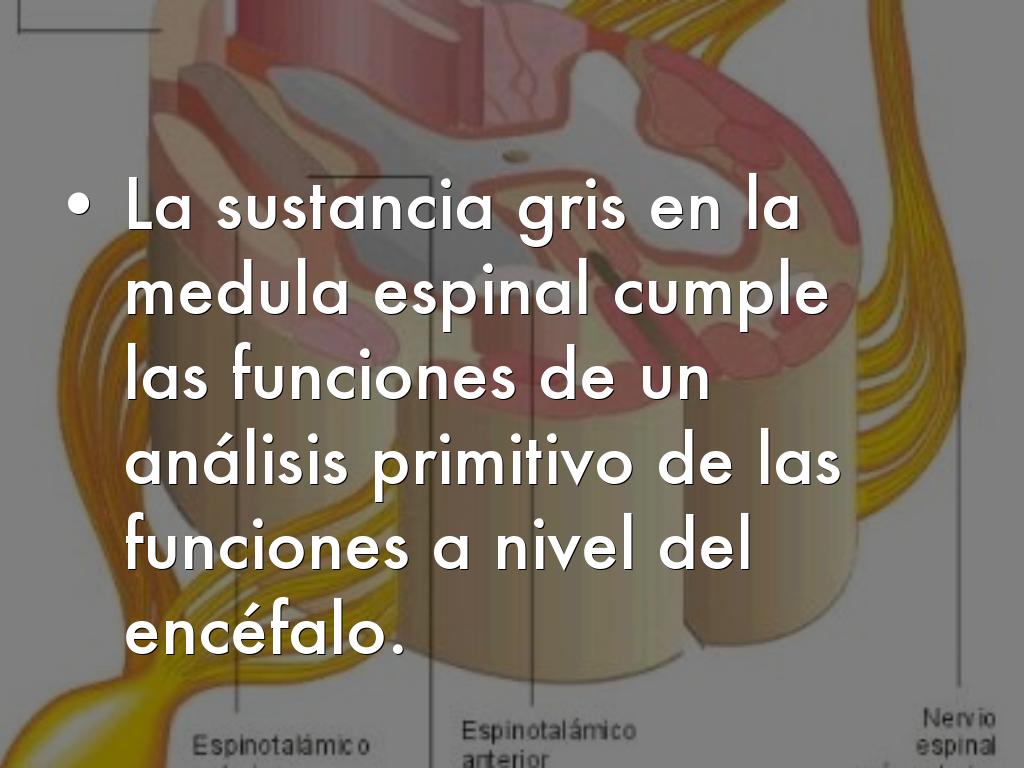 - La sustancia gris en la medula espinal cumple las funciones de un análisis primitivo de las funciones a nivel del encéfalo.