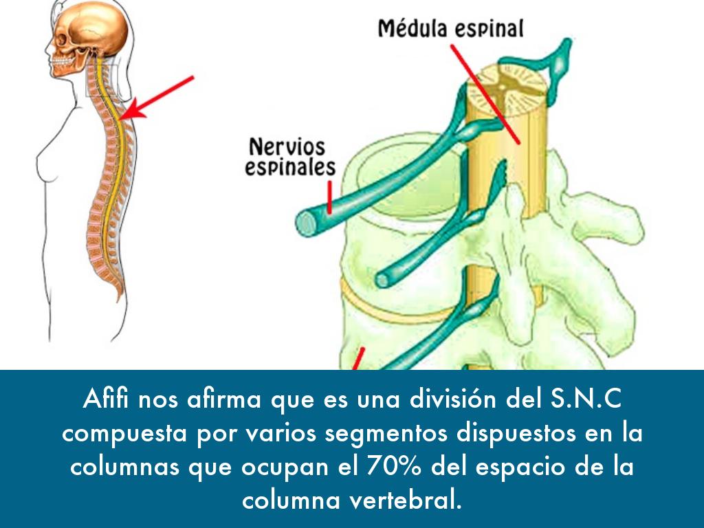 Afifi nos afirma que es una división del S.N.C compuesta por varios segmentos dispuestos en la columnas que ocupan el 70% del espacio de la columna vertebral.